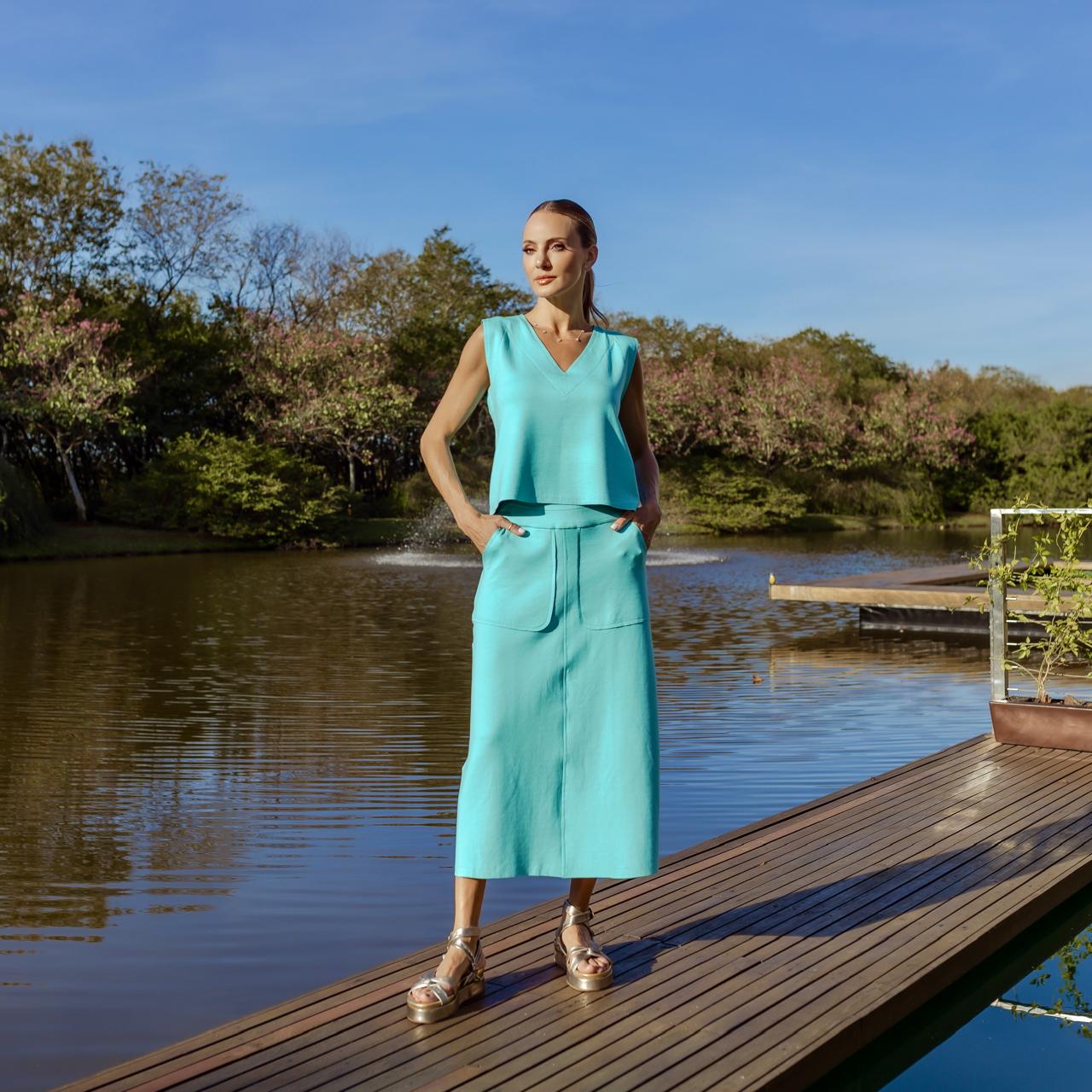 Saia Dupla Face é perfeita para quem busca estilo e funcionalidade em uma única peça. A combinação de viscose, poliamida e elastano oferece conforto inigualável, enquanto o design de dupla face permite variar o visual com facilidade. O cós largo garante sustentação e mobilidade.